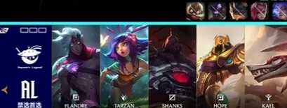 AL选用​:Flandre塞恩,Tarzan纳亚菲利,Shanks沙皇,Hope韦鲁斯,Kael妮蔻